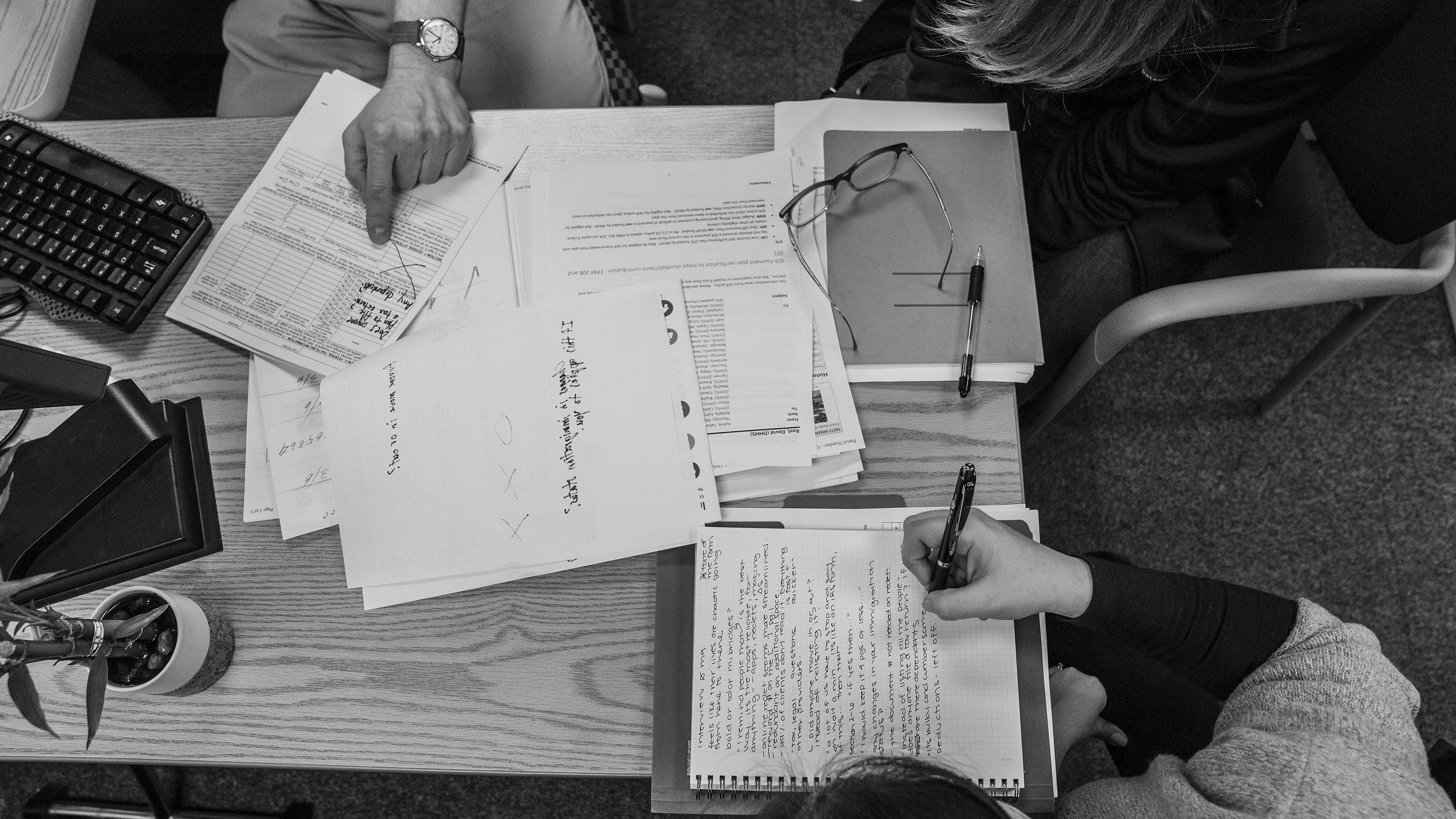 Monica has her paperwork ready.